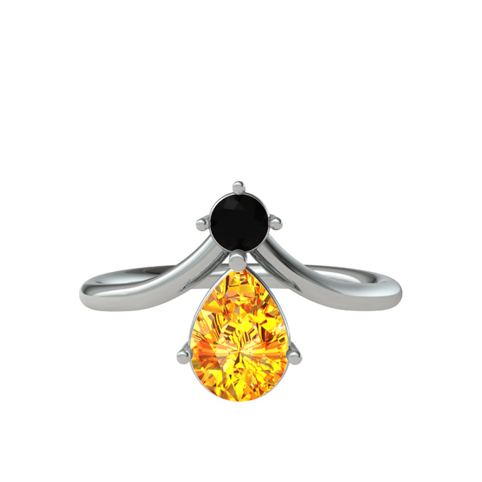 Siyah zirkon ve sitrin 925 ayar gümüş yüzük