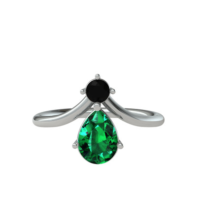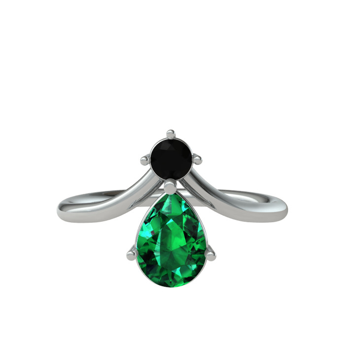 Siyah zirkon ve yeşil kuvars 14 ayar beyaz altın yüzük