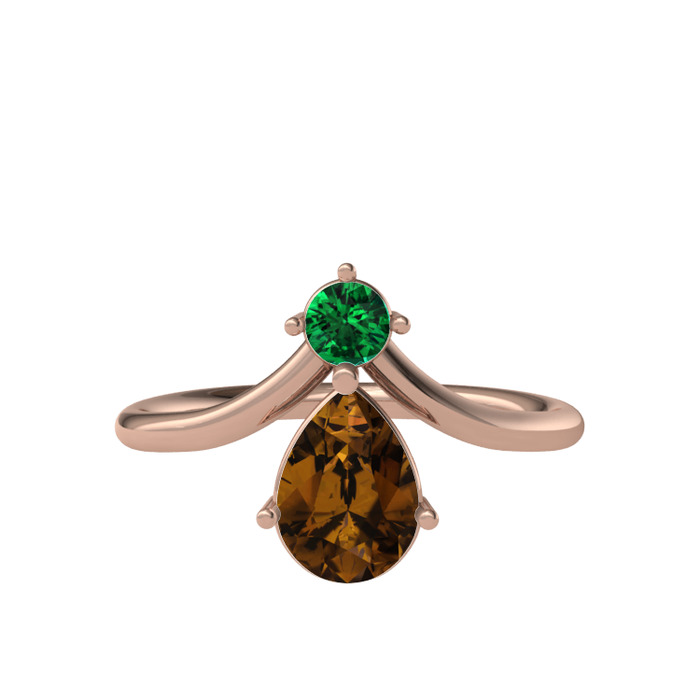 Yeşil kuvars ve dumanlı kuvars 8 ayar rose altın yüzük