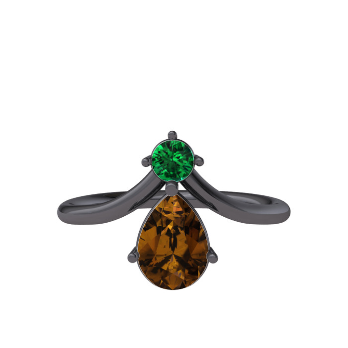 Yeşil kuvars ve dumanlı kuvars 925 ayar siyah rodyum kaplama gümüş yüzük