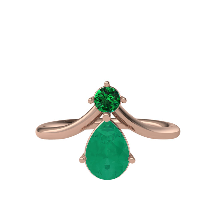 Yeşil kuvars ve kök zümrüt 925 ayar rose altın kaplama gümüş yüzük