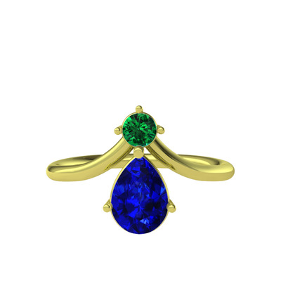 Yeşil kuvars ve lab safir 925 ayar altın kaplama gümüş yüzük