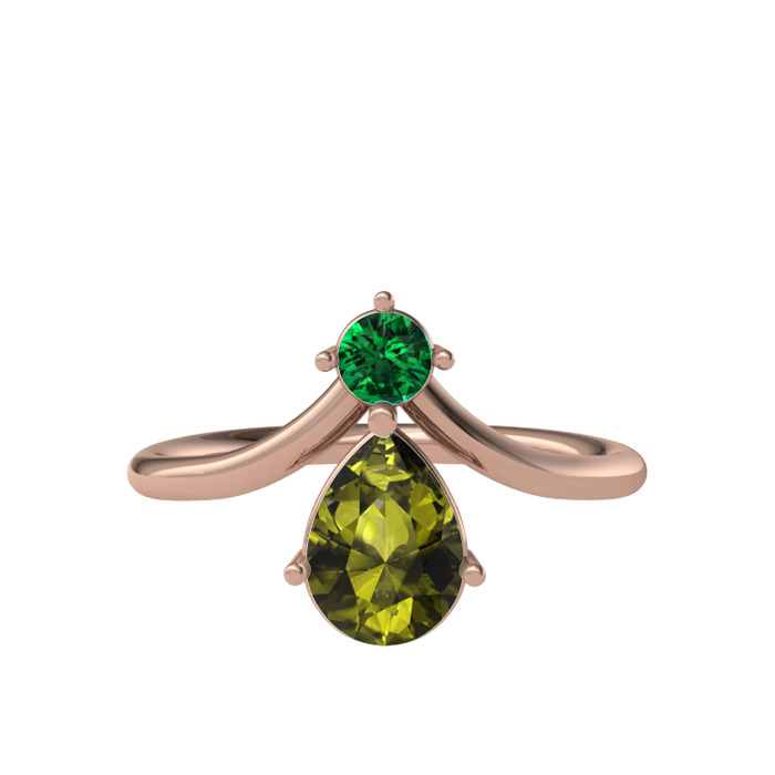 Yeşil kuvars ve peridot 18 ayar rose altın yüzük