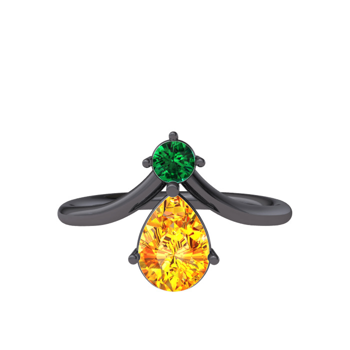 Yeşil kuvars ve sitrin 925 ayar siyah rodyum kaplama gümüş yüzük