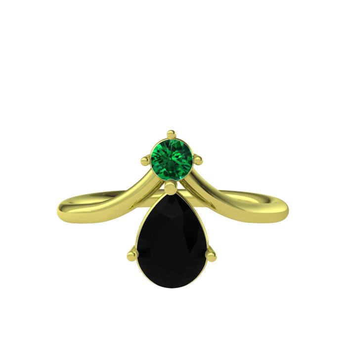 Yeşil kuvars ve siyah zirkon 18 ayar altın yüzük