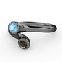 Akuamarin ve dumanlı kuvars 925 ayar siyah rodyum kaplama gümüş yüzük