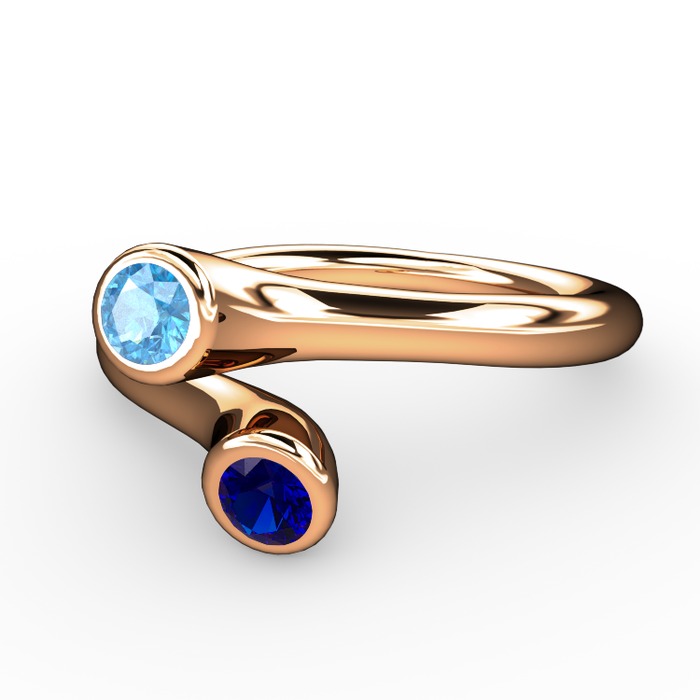 Akuamarin ve lab safir 18 ayar rose altın yüzük
