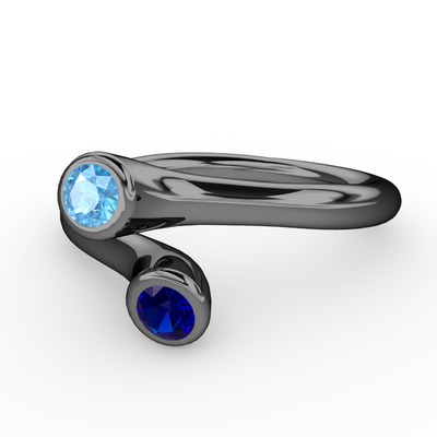 Akuamarin ve lab safir 925 ayar siyah rodyum kaplama gümüş yüzük