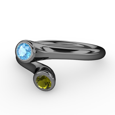 Akuamarin ve peridot 925 ayar siyah rodyum kaplama gümüş yüzük