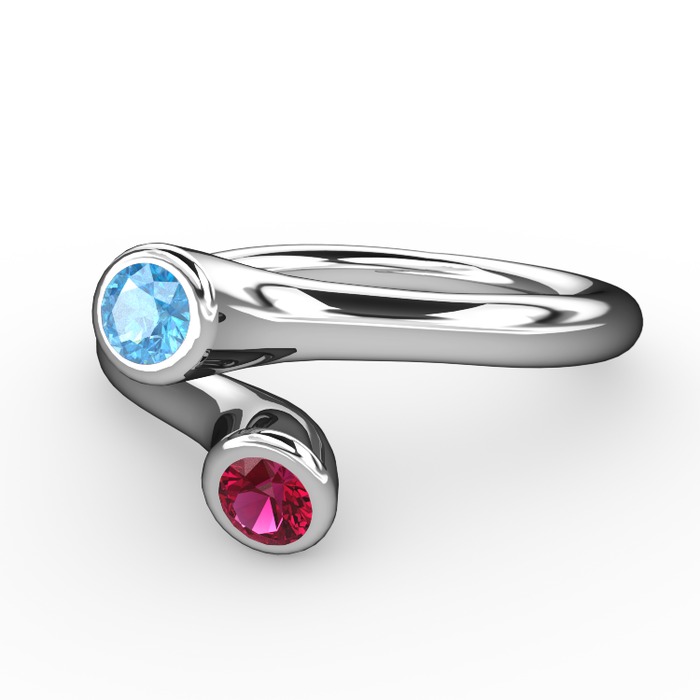 Akuamarin ve rodolit garnet 8 ayar beyaz altın yüzük