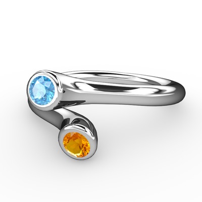 Akuamarin ve sitrin 18 ayar beyaz altın yüzük