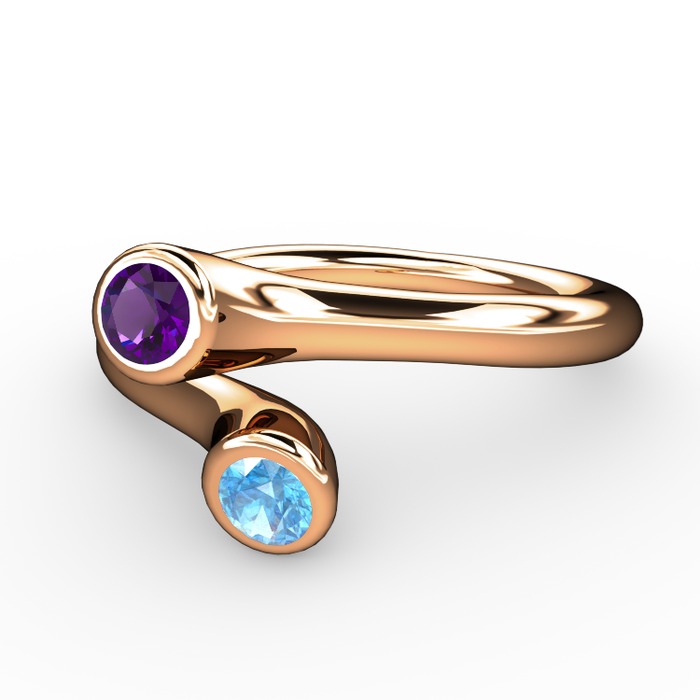Ametist ve akuamarin 925 ayar rose altın kaplama gümüş yüzük