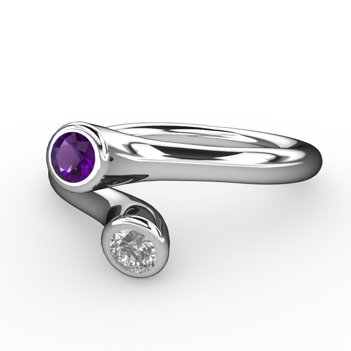 Ametist ve beyaz zirkon 18 ayar beyaz altın yüzük