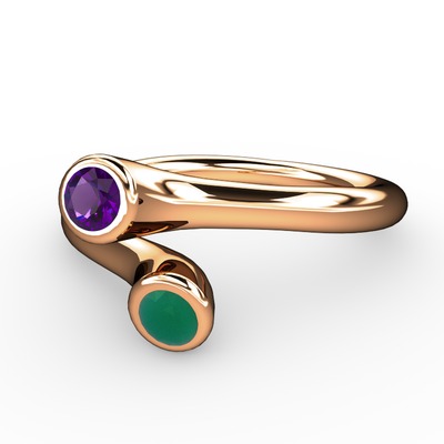 Ametist ve kök zümrüt 14 ayar rose altın yüzük