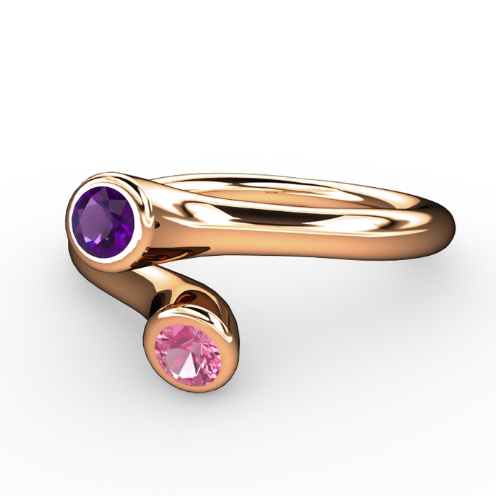 Ametist ve pembe kuvars 18 ayar rose altın yüzük