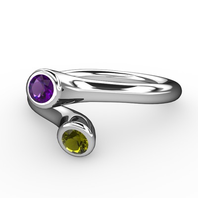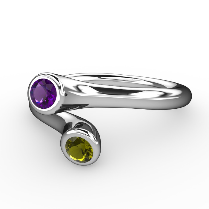 Ametist ve peridot 14 ayar beyaz altın yüzük