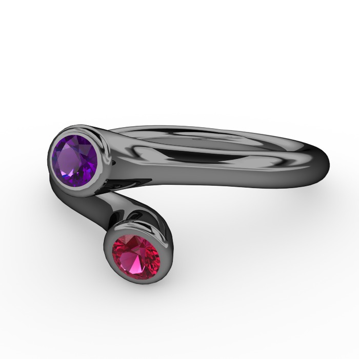 Ametist ve rodolit garnet 925 ayar siyah rodyum kaplama gümüş yüzük