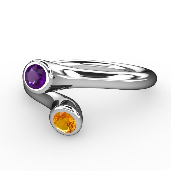 Ametist ve sitrin 8 ayar beyaz altın yüzük