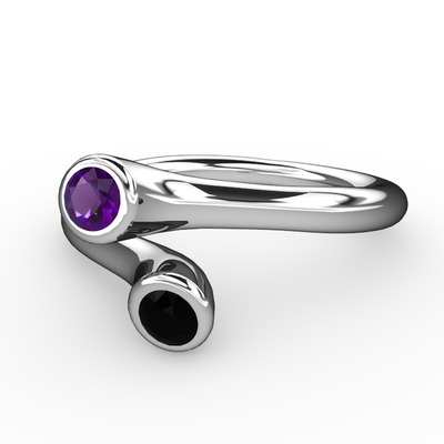 Ametist ve siyah zirkon 8 ayar beyaz altın yüzük