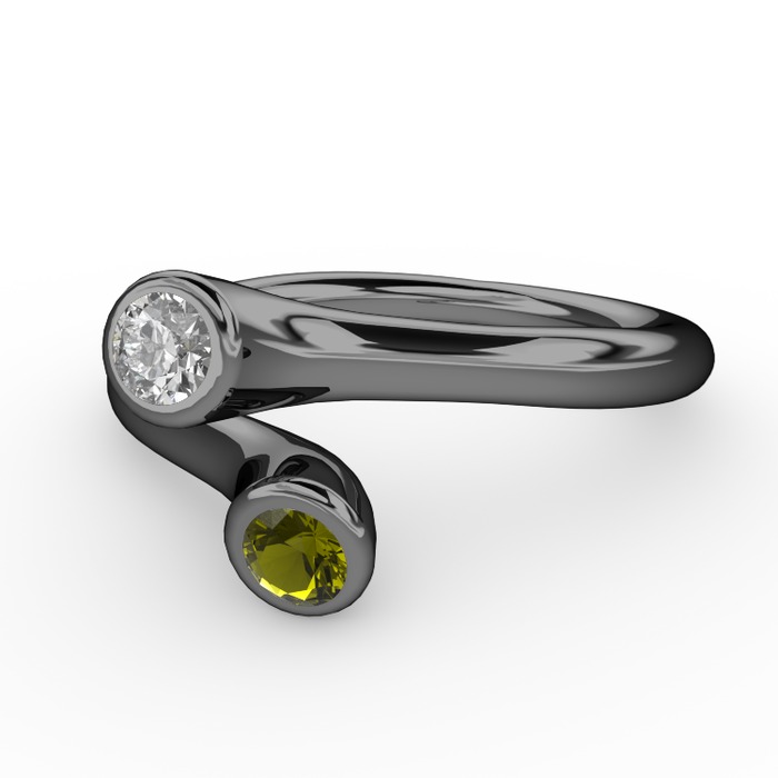 Beyaz zirkon ve peridot 925 ayar siyah rodyum kaplama gümüş yüzük