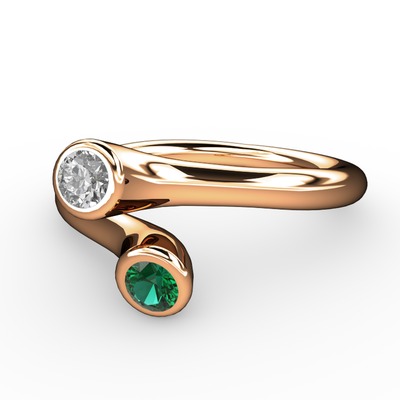 Beyaz zirkon ve yeşil kuvars 8 ayar rose altın yüzük