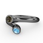 Dumanlı kuvars ve akuamarin 925 ayar siyah rodyum kaplama gümüş yüzük
