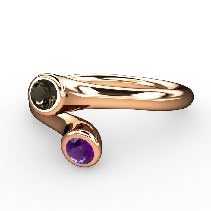 Dumanlı kuvars ve ametist 18 ayar rose altın yüzük