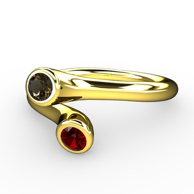 Dumanlı kuvars ve garnet 14 ayar altın yüzük