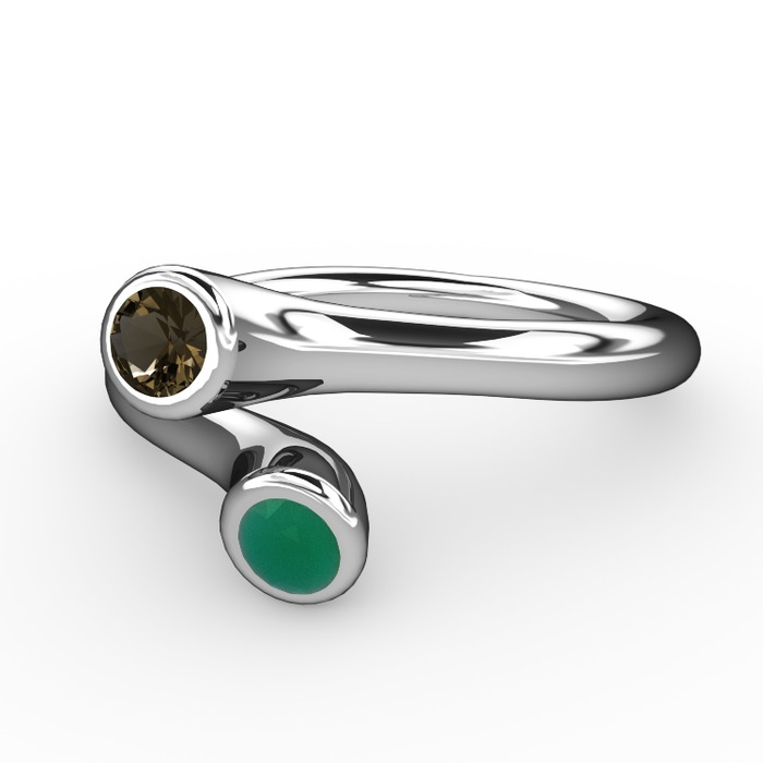 Dumanlı kuvars ve kök zümrüt 925 ayar gümüş yüzük