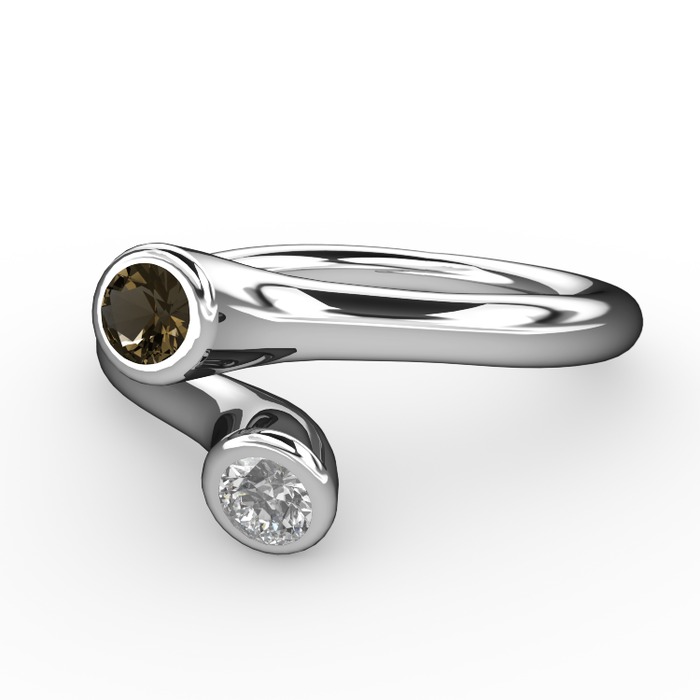 Dumanlı kuvars ve pırlanta 8 ayar beyaz altın yüzük (0.04 karat)