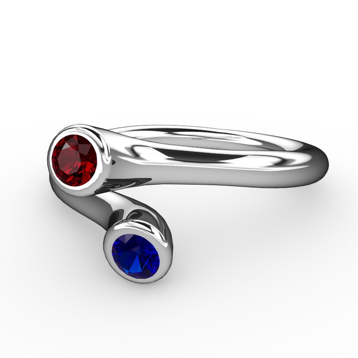 Garnet ve lab safir 18 ayar beyaz altın yüzük