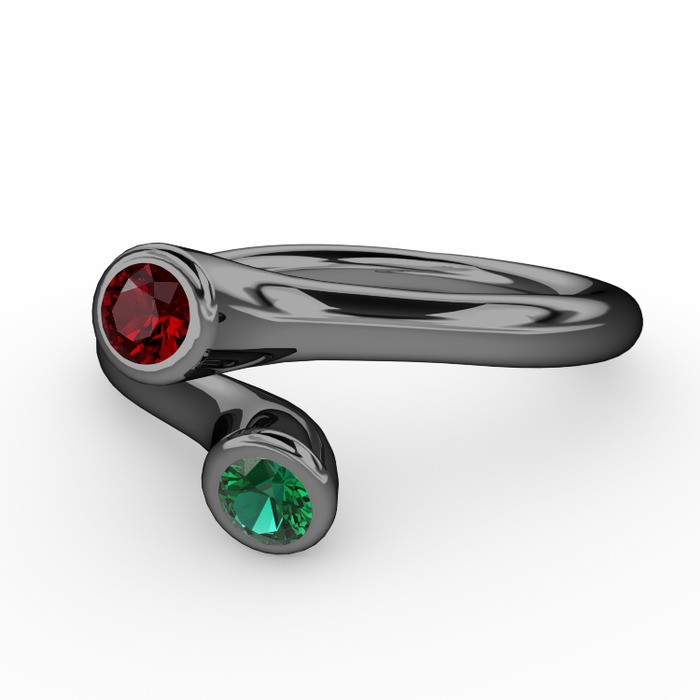 Garnet ve yeşil kuvars 925 ayar siyah rodyum kaplama gümüş yüzük