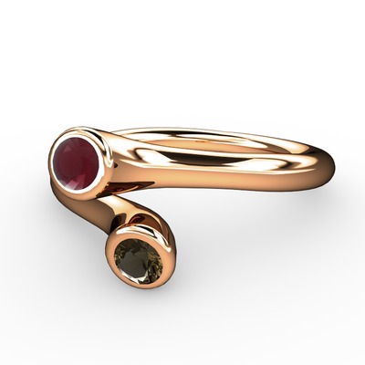 Kök yakut ve dumanlı kuvars 14 ayar rose altın yüzük