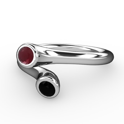 Kök yakut ve siyah zirkon 18 ayar beyaz altın yüzük
