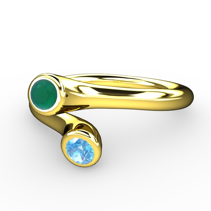 Kök zümrüt ve akuamarin 8 ayar altın yüzük