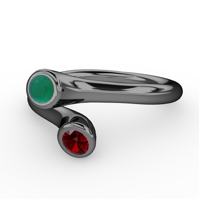 Kök zümrüt ve garnet 925 ayar siyah rodyum kaplama gümüş yüzük