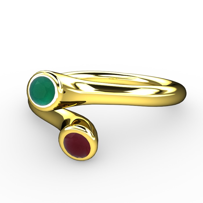 Kök zümrüt ve kök yakut 18 ayar altın yüzük
