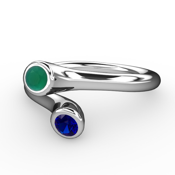 Kök zümrüt ve lab safir 8 ayar beyaz altın yüzük