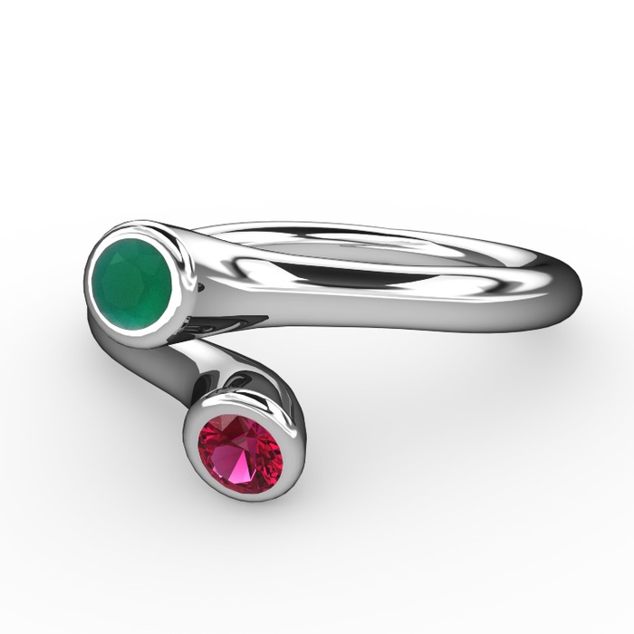 Kök zümrüt ve rodolit garnet 18 ayar beyaz altın yüzük