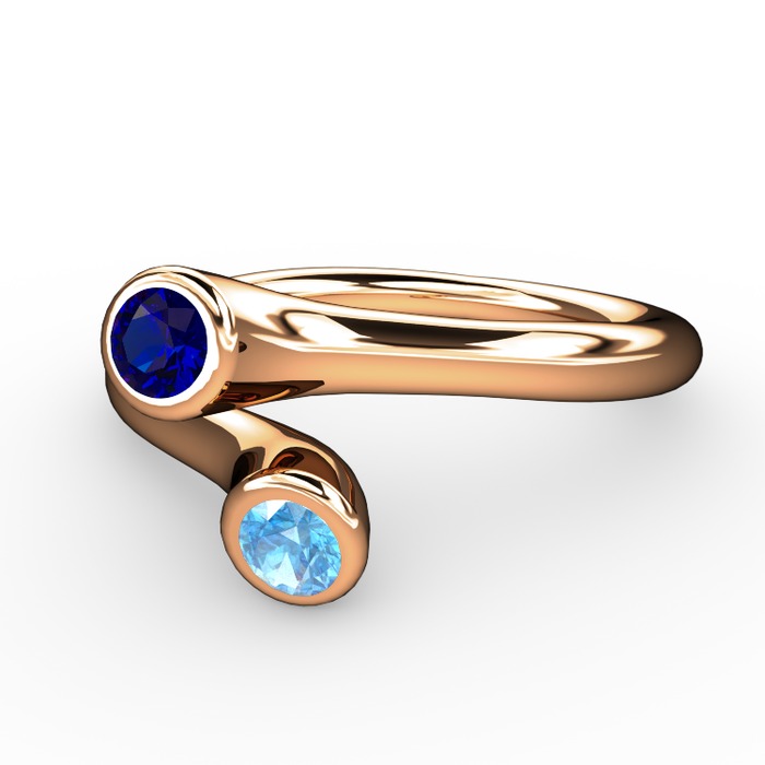 Lab safir ve akuamarin 18 ayar rose altın yüzük