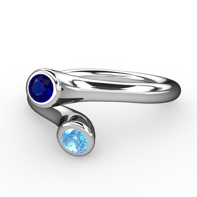 Lab safir ve akuamarin 8 ayar beyaz altın yüzük