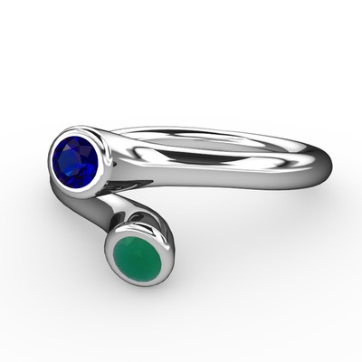 Lab safir ve kök zümrüt 18 ayar beyaz altın yüzük