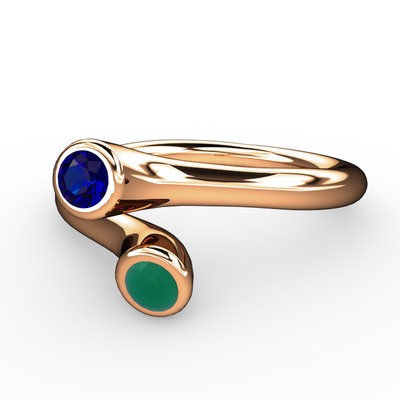 Lab safir ve kök zümrüt 925 ayar rose altın kaplama gümüş yüzük