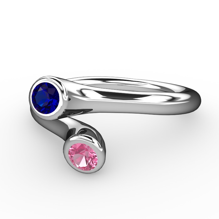 Lab safir ve pembe kuvars 18 ayar beyaz altın yüzük