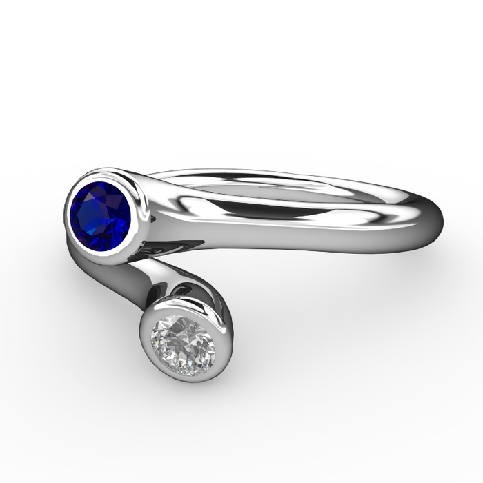 Lab safir ve pırlanta 18 ayar beyaz altın yüzük (0.04 karat)
