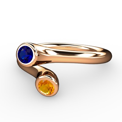 Lab safir ve sitrin 14 ayar rose altın yüzük