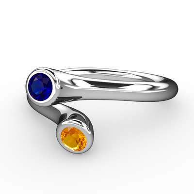 Lab safir ve sitrin 18 ayar beyaz altın yüzük