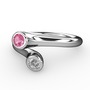 Pembe kuvars ve beyaz zirkon 18 ayar beyaz altın yüzük