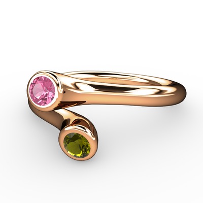 Pembe kuvars ve peridot 8 ayar rose altın yüzük