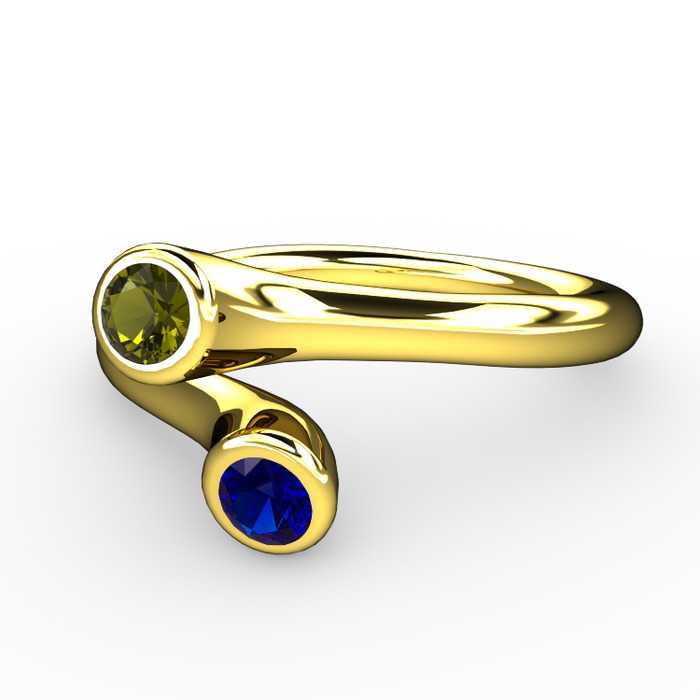 Peridot ve lab safir 925 ayar altın kaplama gümüş yüzük